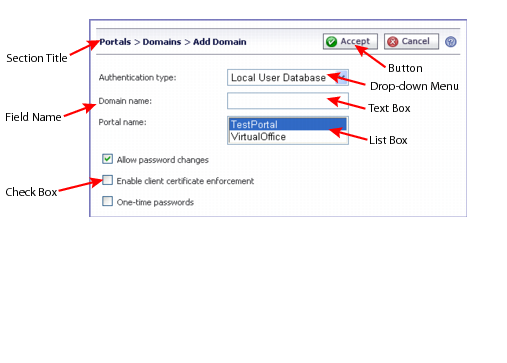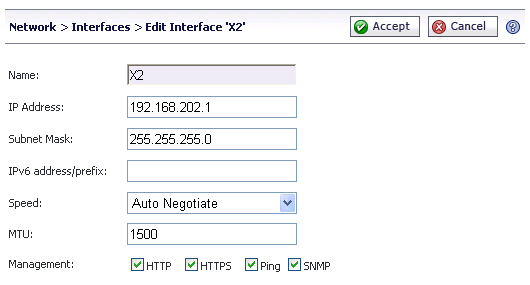 If the settings are contained in a secondary window within the management interface, the Accept button is still available at the top right corner of the window.