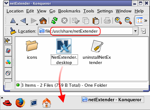 6 Launch the NetExtender.tgz file and follow the instructions in the NetExtender installer. The new netExtender directory contains a NetExtender shortcut that can be dragged to your desktop or toolbar.
