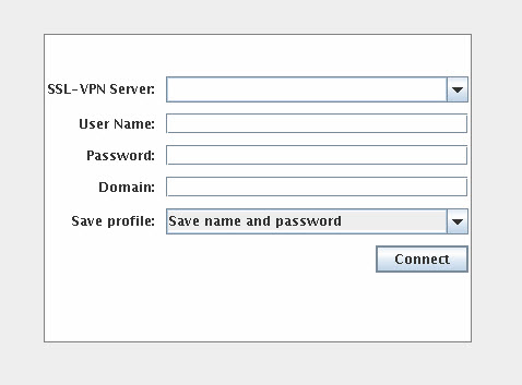 2 The first time you connect, you must enter the server name or IP address in the SSL VPN Server field.