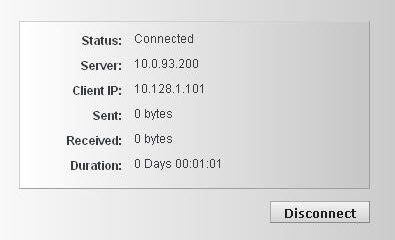 13 When NetExtender completes installing, the NetExtender Status window displays, indicating that NetExtender successfully connected.