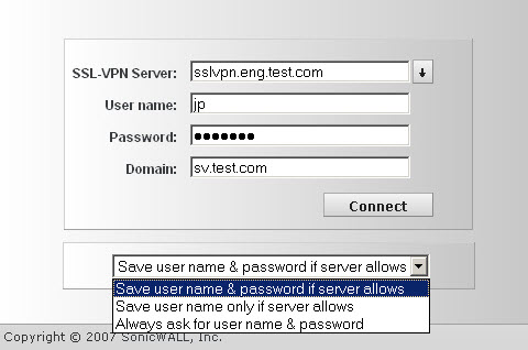 6 You can instruct NetExtender remember your profile server name in the future. In the Save profile drop-down menu you can select Save name and password (if allowed), Save username only (if allowed), or Do not save profile.