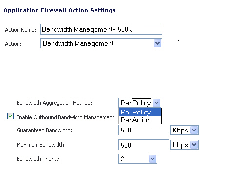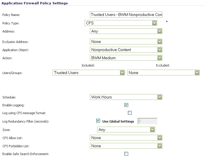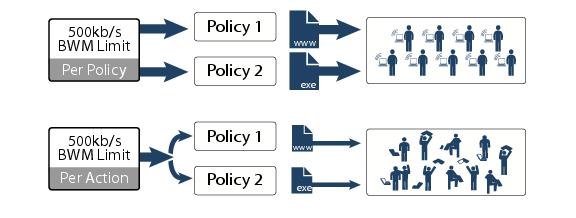 - CFS specifications can be included in bandwidth management policies based on CFS website categories. This also allows use of ‘Bandwidth Aggregation’ by adding a per-action bandwidth aggregation method.