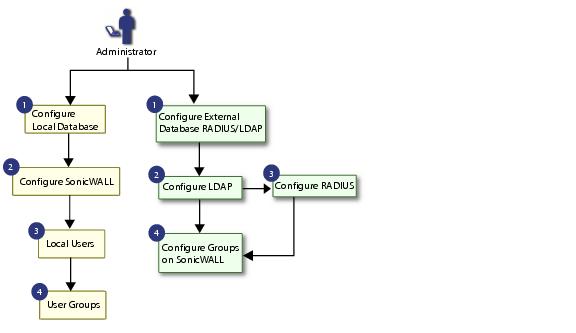 The SonicWALL security appliance provides a local database for storing user and group information. You can configure the SonicWALL to use this local database to authenticate users and control their access to the network. The local database is a good choice over LDAP or RADIUS for this purpose when the number of users accessing the network is relatively small. Creating entries for dozens of users and groups takes time, although once the entries are in place they are not difficult to maintain. For networks with larger numbers of users, user authentication using LDAP or RADIUS servers can be more efficient.
