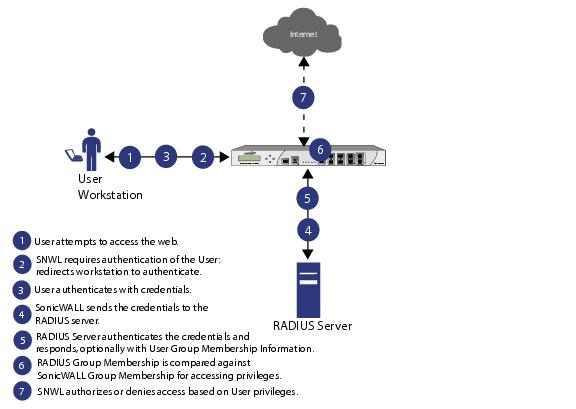 Remote Authentication Dial In User Service (RADIUS) is a protocol used by SonicWALL security appliances to authenticate users who are attempting to access the network. The RADIUS server contains a database with user information, and checks a user’s credentials using authentication schemes such as Password Authentication Protocol (PAP), Challenge-handshake authentication protocol (CHAP), Microsoft CHAP (MSCHAP), or MSCHAPv2.