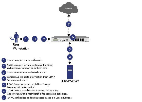 In addition to RADIUS and the local user database, SonicOS Enhanced supports LDAP for user authentication, with support for numerous schemas including Microsoft Active Directory (AD), Novell eDirectory directory services, and a fully configurable user-defined option that should allow it to interact with any schema.